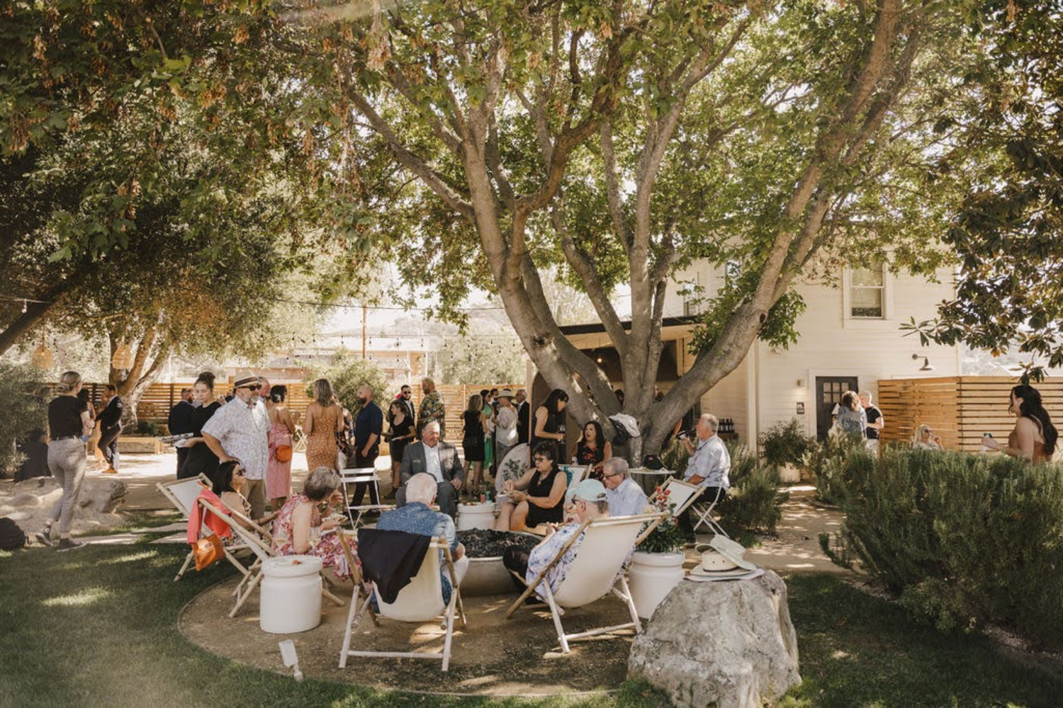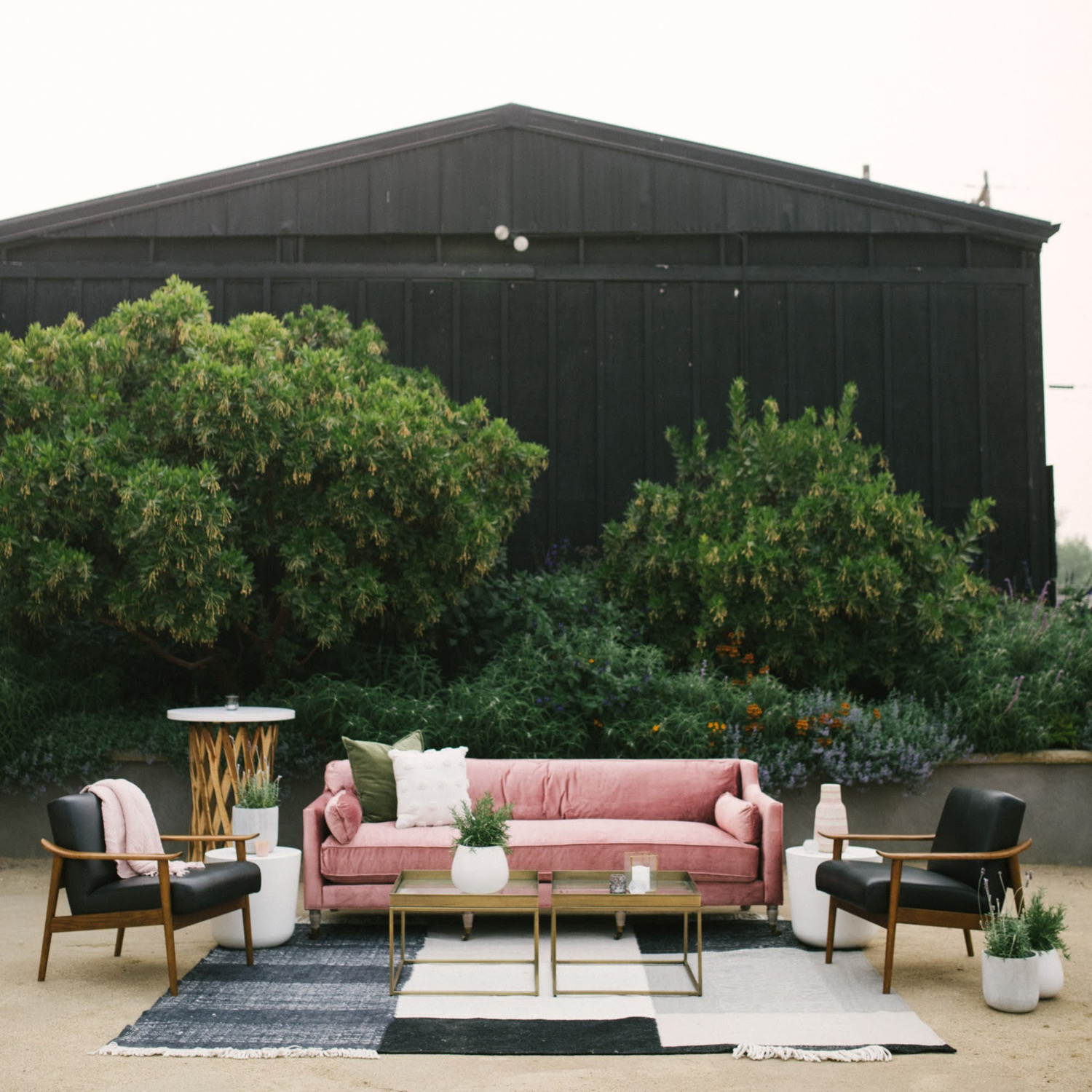 This stylish wine tasting garden, located in the heart of the revitalized town of Los Alamos, offers a charming setting for a road trip-style wedding. The venue features a minimalist design with towering old-growth trees, a private outdoor reception area with a rustic greenhouse for catering displays, a large fire pit ring, and bocce ball court. With its close proximity to the famous Hwy 1, you are steps away from some amazing road-trip pit stops like Bob’s Well Bread bakery and the Michelin star restaurant, Bell’s. The venue offers onsite accommodations in the beautiful renovated farmhouse on site. The town also offers chic guest lodging at trendy boutique hotels like the Alamo and Skyview Motel. Bike tours and convenient walkability make Bodega Los Alamos an ideal location for a wine connoisseur’s getaway. Couples can take advantage of Avenue Twelve’s event design services and a range of party rentals, including lounge furniture and bars, to create their dream wedding celebration in this stylish venue. Avenue Twelve is the exclusive event rental provider for Bodega Los Alamos, so couples can look forward to special incentives and perks!