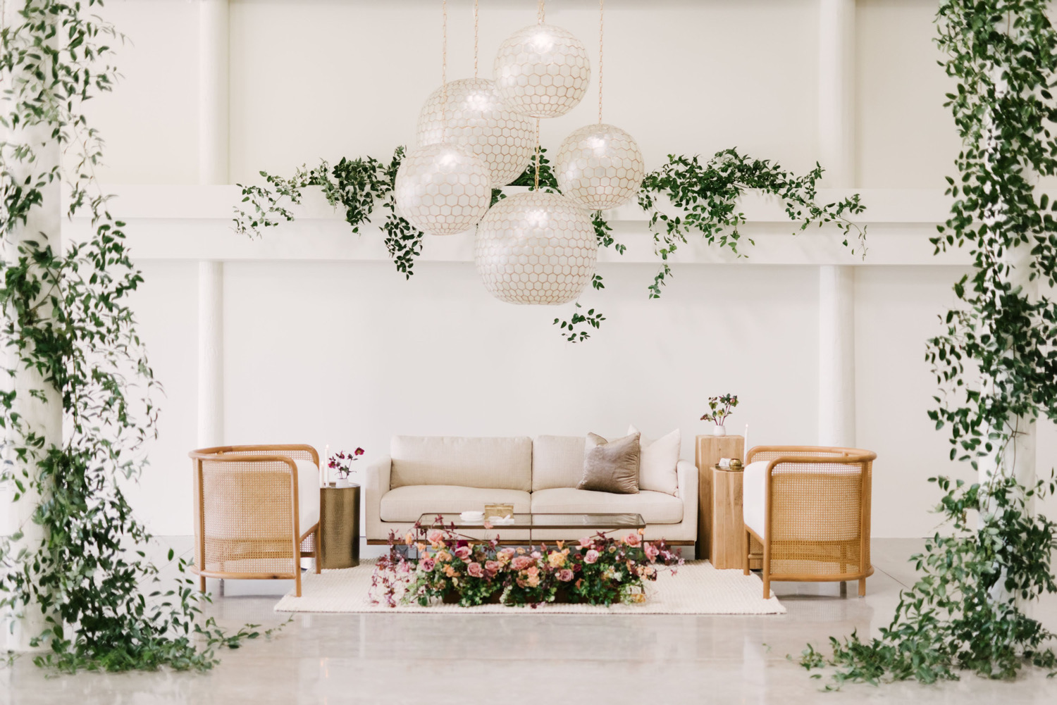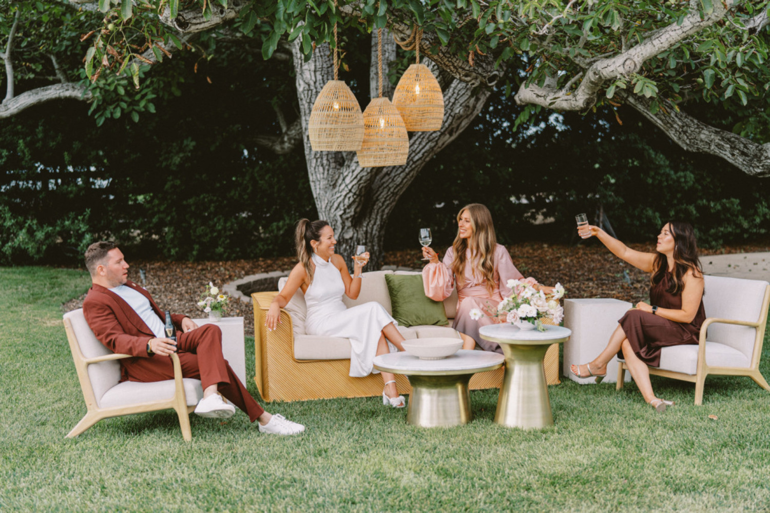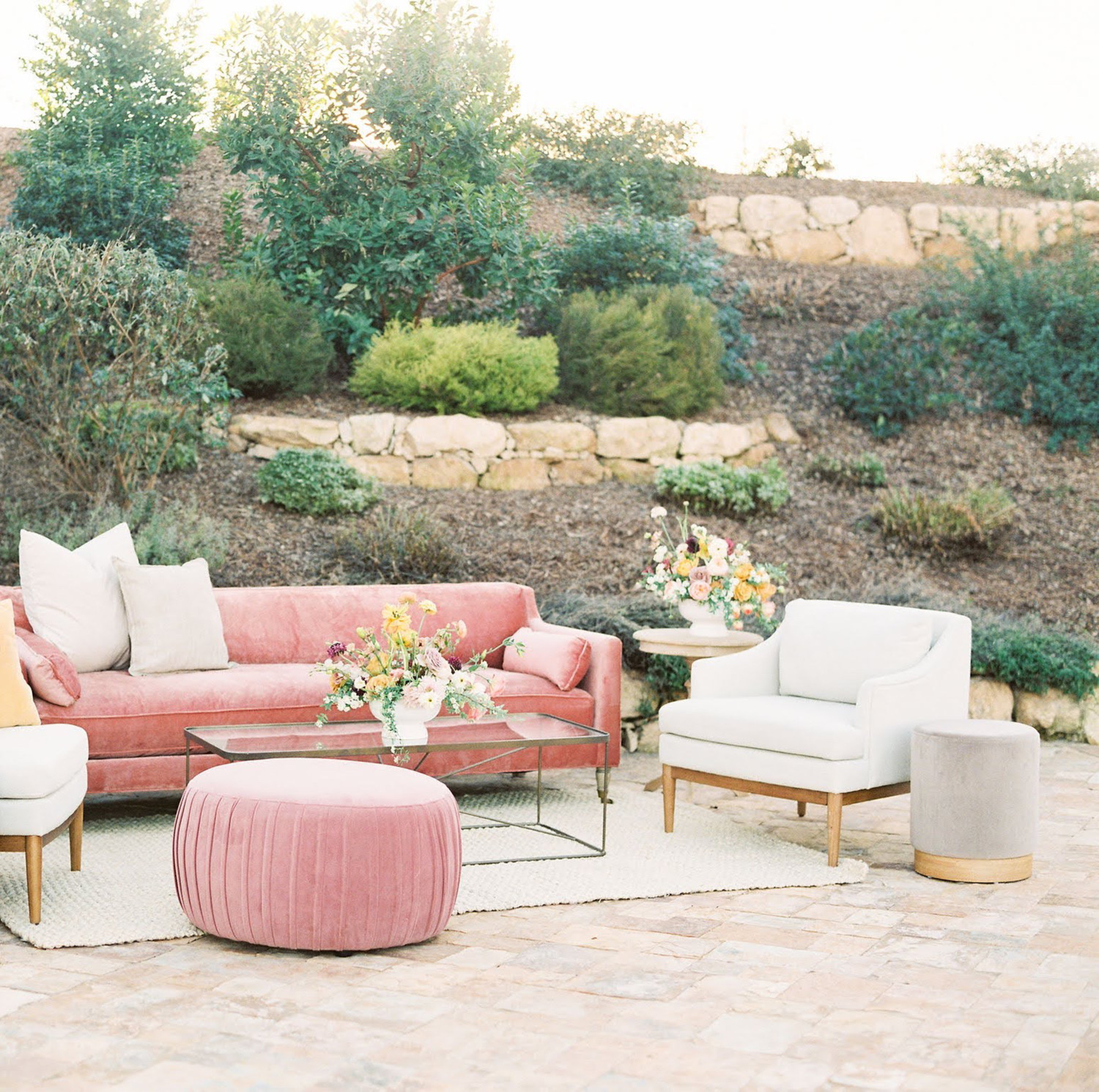 Tucked in the rolling hills above the quiet beach town of Cayucos, is a rustic and charming venue for a relaxed wedding crowd. With breathtaking coastal views and a variety of outdoor ceremony sites, this ranch offers the perfect backdrop for your special day. Guests can enjoy the small town of Cayucos while visiting the famous Brown Butter Cookie Company, or grabbing a sunset cocktail at Schooner’s before an evening stroll down the historic pier. The on-site bridal suite is a popular amenity that you and your bridal party will enjoy before walking down the aisle. The unique and beautiful blue barn is nestled in a peaceful eucalyptus grove, which is a popular spot for migrating monarch butterflies and the perfect backdrop for memorable photos. Your guests will enjoy cocktail hour in the beautifully landscaped gardens just outside the barn amongst the wildflowers, steps away from an active cattle ranch that provides an authentic experience that your out-of-town guests will be buzzing about. Experience a unique and laid-back wedding at Swallow Creek Ranch with some cozy lounges by Avenue Twelve that are sure to elevate your guests’ experience with comfortability and style.